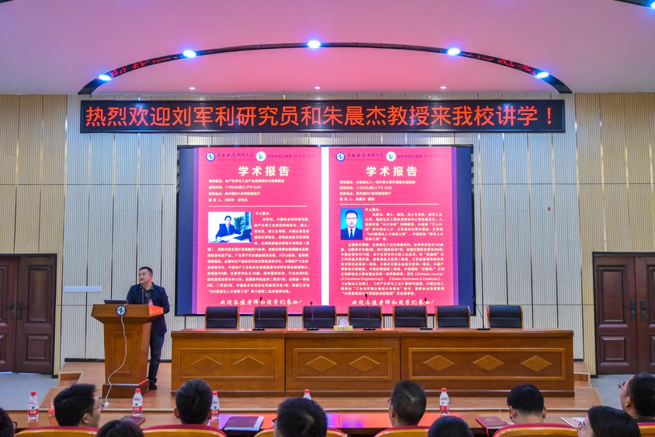 2024年11月6日,中国林科院林化所刘军利研究员和南京工业大学朱晨杰教授应邀来我校开展学术交流并作主旨报告。化学与化工学院院长谢练武、党委书记吴海刚、科学研究院院长卿彦、教务处处长王文磊,化工学院、材料学院与生环学院骨干教师、研究生与本科生共200多人听取了学术报告,报告会由王挥教授主持。