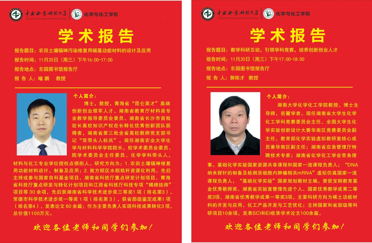 报 告 人:喻鹏 教授 湖南农业大学化学与材料科学学院院长