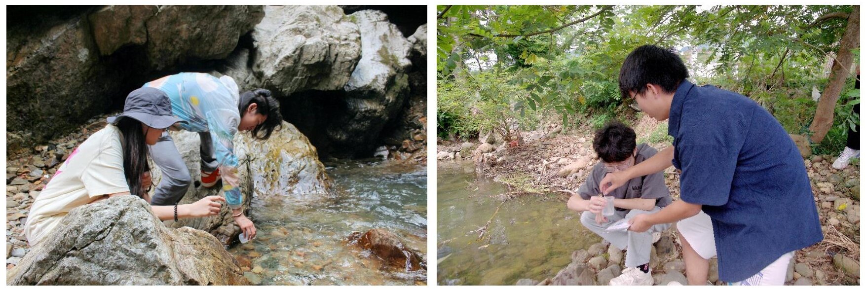 凝思想、聚共识,奏响生态优先“主题曲”,把准生态经济航向。为贯彻绿色发展理念推动形成人与自然和谐发展的现代化建设新格局。“化绿”乡村振兴促进团队员相互协作,以两人为小组,保持严谨科学的态度,去往泉水镇各水源地用专业的试纸对水质进行初步分析,并严格按照液体取样规则进行取样。这些样品最终会带回学院实验室进行深度检测,并对其水体中的化学物质含量进行分析,最后形成检测报告,送回当地。