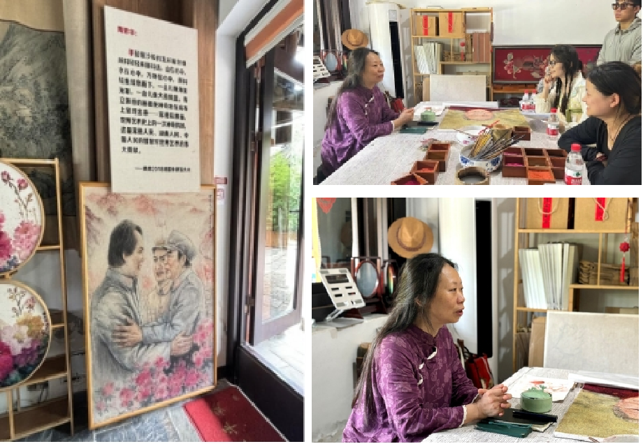 7月18日上午,非遗文化传承团的成员来到了李健鹰麻质画艺术工作室,有幸采访到了麻质画非遗文化传承人李健鹰老师。她从接触到麻质画开始就深深地爱上了麻质画,三十多年来,作为传承人她不断地在麻质画中加入自己对艺术的理解与思考,使得麻质画表现出国画的晕染感、兼具西方油画的厚重感,同时还会有雕塑作品的立体凹凸感。