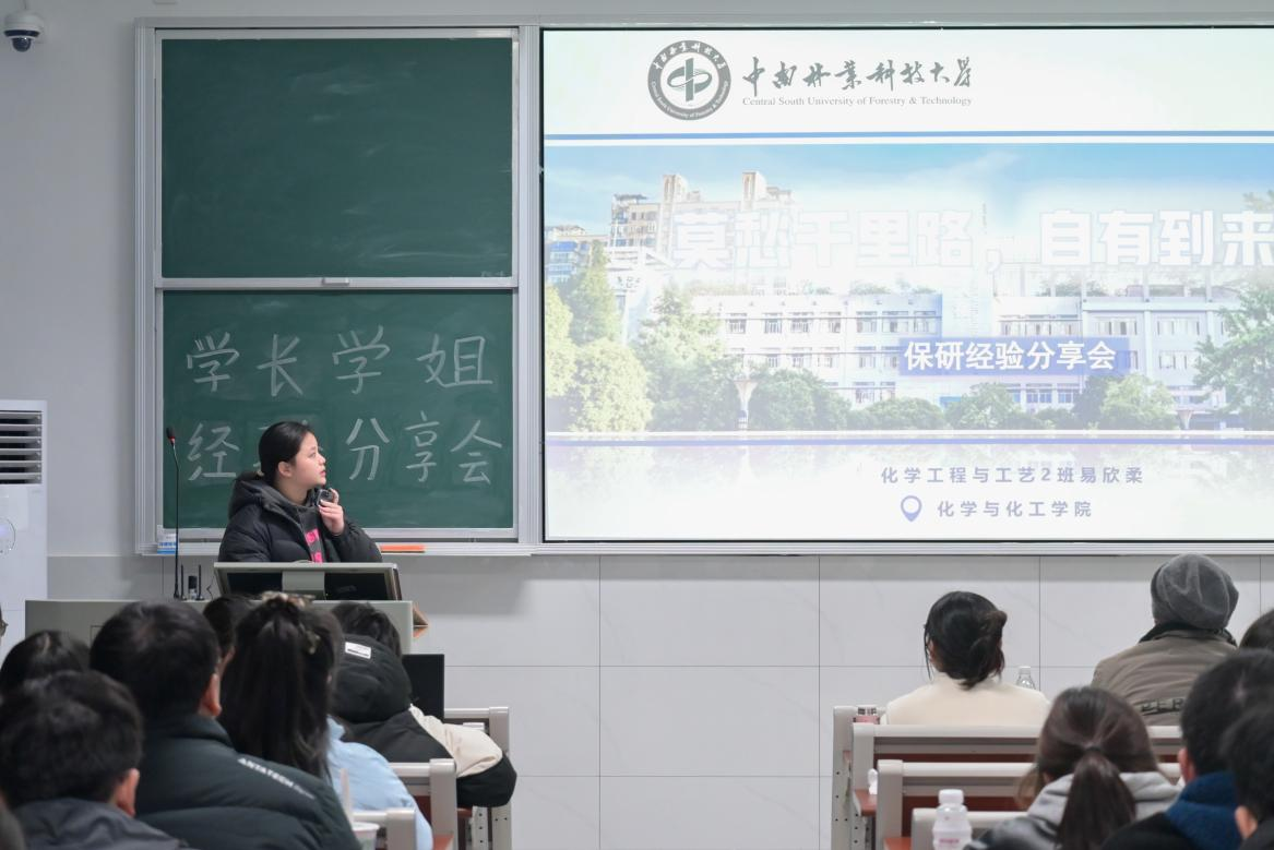 结合自身的学习、科研及工作实践,易欣柔详细介绍了保研经验,涵盖推免申请条件、附加分项目与推免流程等内容,并幽默分享了保研成功的诀窍。她鼓励同学们勇于尝试学科竞赛、创新创业、科研探索及参军入伍等,持续奋进,助力同学们明晰未来方向,极大地激发了大家克服困难、追求卓越的学习热情与信心。