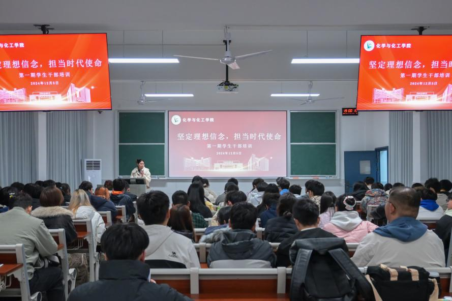 为强化团学干部队伍建设,全面提升学生干部的组织、引领与服务能力,化学与化工学院于2024年12月5日在经世楼201举办了以“坚定理想信念,担当时代使命”为主题的第一期学生干部培训会。学院党委副书记陈慧慧老师,学生工作办公室李斯、程钰莹、张文芳老师均出席本次会议,全体团学成员及主要学生干部积极参与,会议由辅导员张文芳主持。