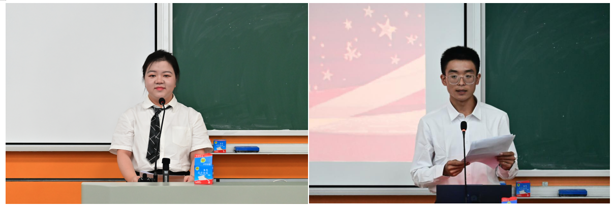 2021级陈荣康结合自己的亲身经历,从学习、科研、竞赛三个方面与大家分享了宝贵的经验。她通过自身经历以“想多了都是问题,做多了都是答案”勉励学弟学妹们做到“学习勤奋刻苦、科研严谨求真、竞赛勇于拼搏。”2024级吴均倍对自己提出了几点期望:一要成为有品德、讲道德的人;二要成为有志向、敢追梦的人;三要成为有毅力、肯吃苦的人。同时也勉励同学们要以进取为荣,以优秀为榜样,牢记领导、老师和父母的殷切期望,不负韶华,砥砺奋发,在未来的四年里共同进步,共同成长,用微笑和汗水迎接成功,用优秀和感恩回馈母校。