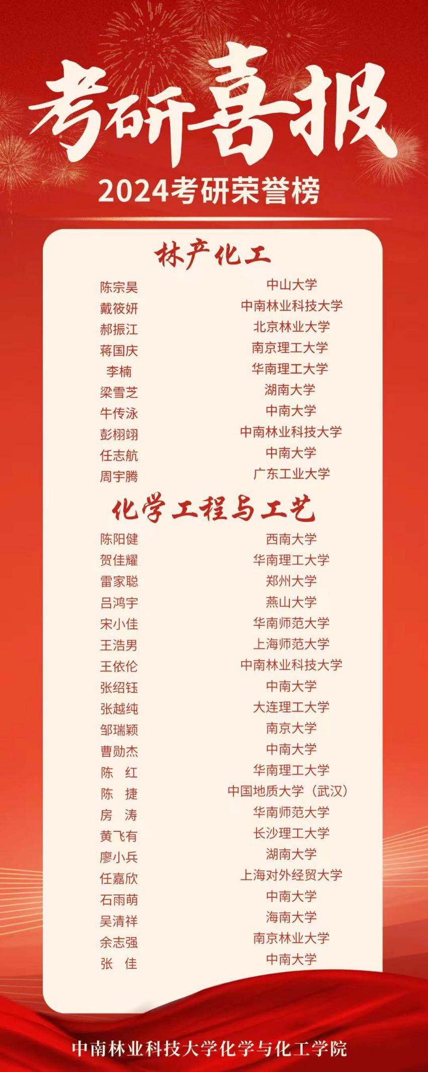 追风赶月莫停留,平芜尽处是春山。考研路上,每一位参与者都是英雄。无论结果如何,这段经历本身就是一次宝贵的成长。对于此刻还在等待或计划再次启程的朋友,愿你们能从这份喜报中汲取力量,相信自己,坚持梦想,因为每一次努力都不会白费,每一步前行都算数。正如习近平总书记所言:“青年一代有理想、有本领、有担当,国家就有前途,民族就有希望。” 在此,让我们以最诚挚的祝福,不仅献给成功上岸的学子,也献给所有勇敢追梦、不懈奋斗的人们!我们相信,在未来的学术道路上,化学与化工学院学子必将创造更多的辉煌!